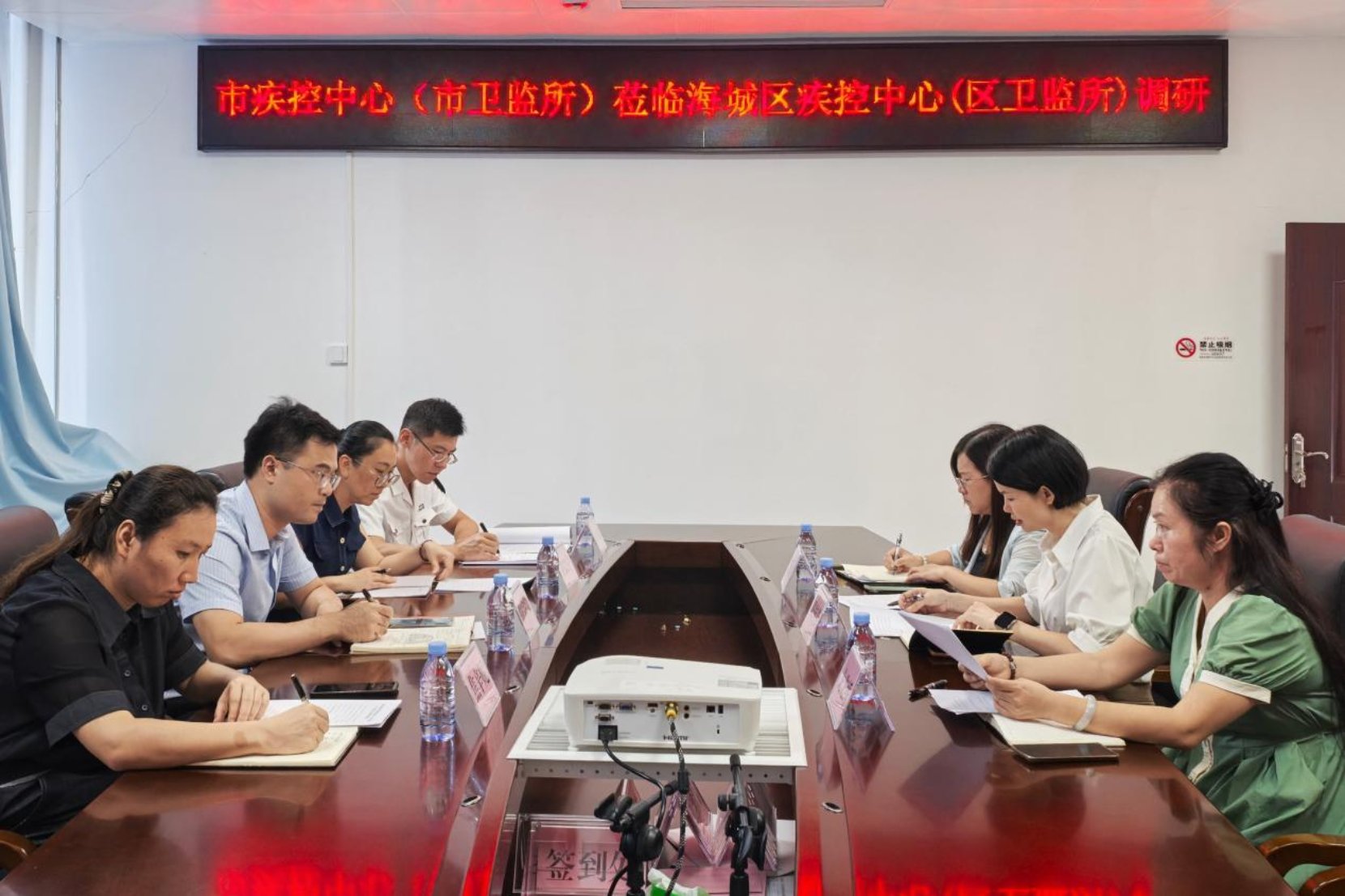 10月13日,市疾控中心(市卫监所)党委书记、主任(所长)骆宗仪一行4人,先后到海城区疾控中心(区卫监所)、银海区疾控中心(区卫监所)开展工作调研,深入一线,统筹推进基层疾控机构基础建设、秋冬季传染病防控及卫生监督执法工作,持续强化基层能力建设,助力我市构建起市、区两级疾控机构上下联动、协同发力的工作体系,为基层疾控(卫监)工作提质增效。