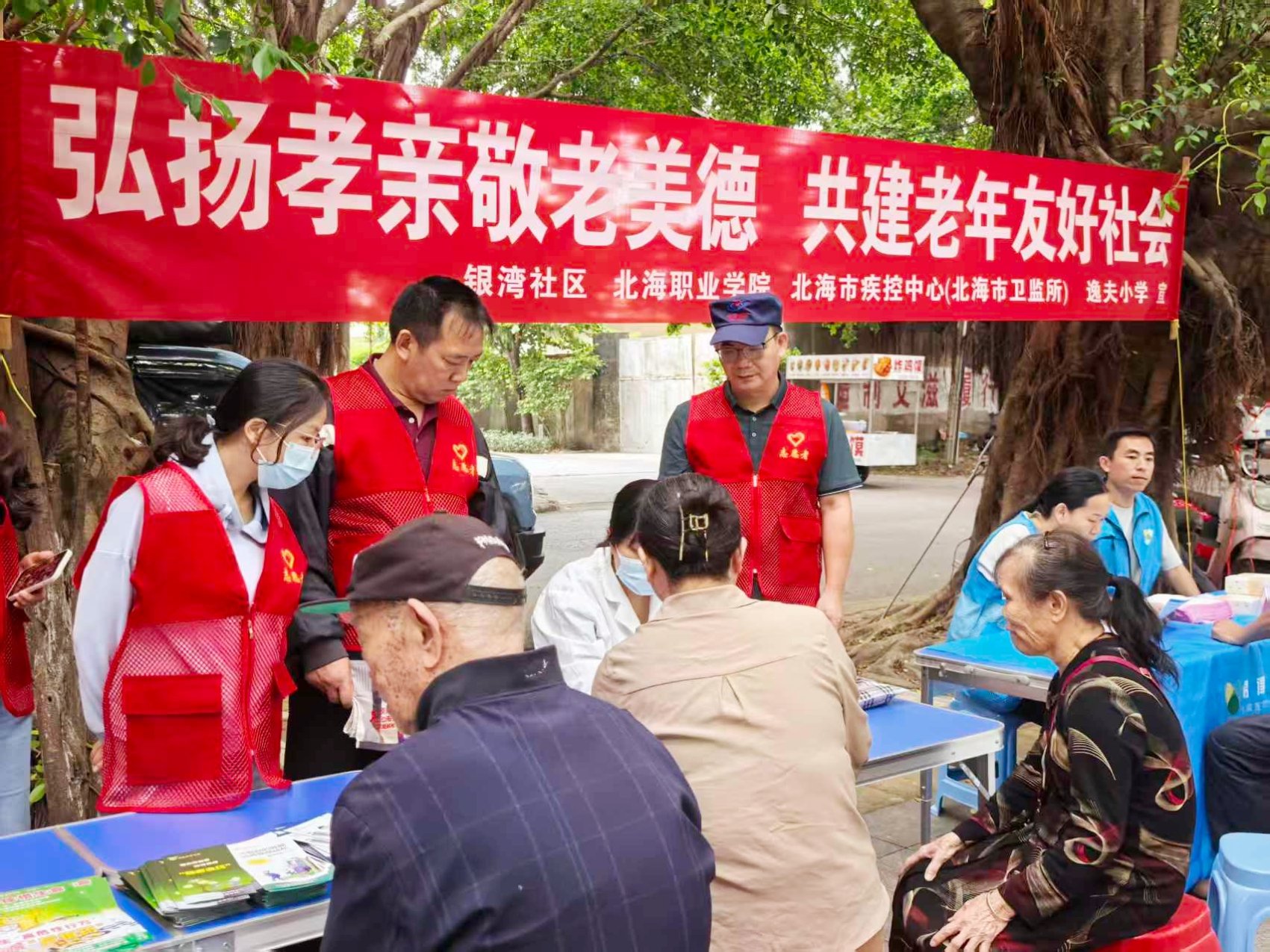 10月29日,北海市疾控中心(北海市卫监所)联合互联共建单位银湾社区,结合党日活动,在西藏路公园小广场开展“弘扬孝亲敬老美德 共建老年友好社会”主题健康知识宣传志愿服务活动,旨在弘扬中华民族尊老、敬老、爱老、助老的传统美德。