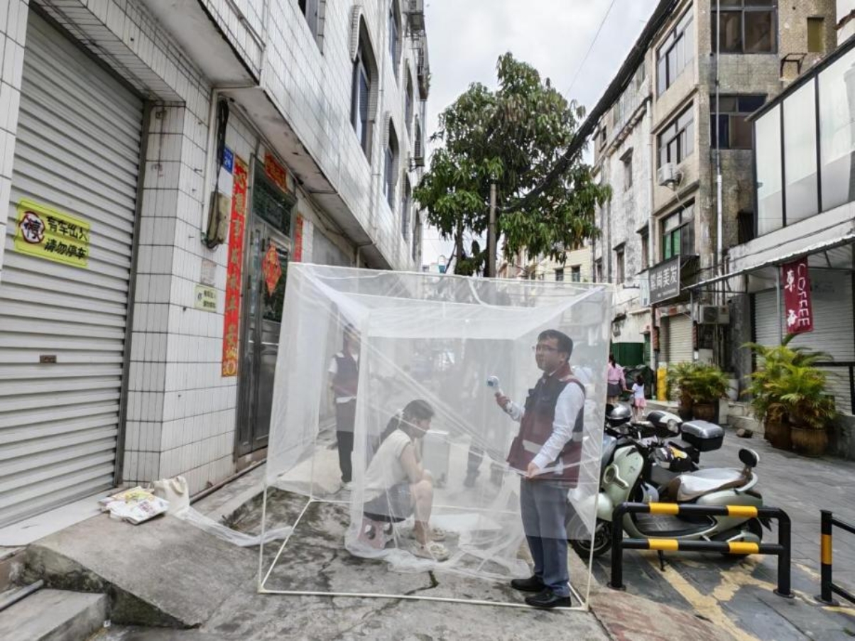 图2:市疾控中心(市卫监所)联合海城区疾控中心(区卫监所)在海城区中山路社区按照国家防控方案布设监测点,开展媒介伊蚊密度监测工作(双层叠账法)