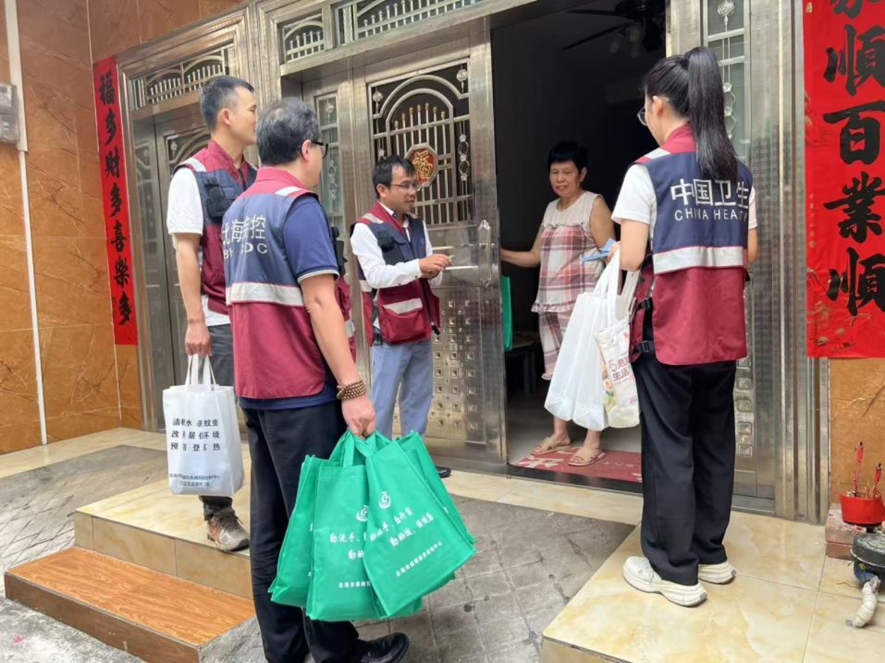 图3:市疾控中心(市卫监所)联合海城区疾控中心(区卫监所)到幸福里社区居民家中通过发放科普手册和宣传礼品、现场讲解等多种形式,向群众细致普及蚊媒传染病防控知识