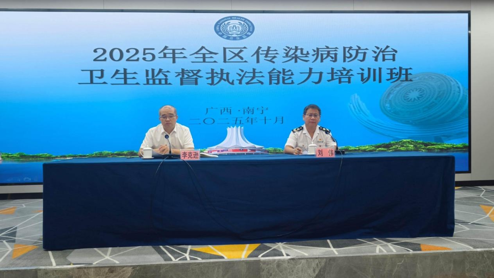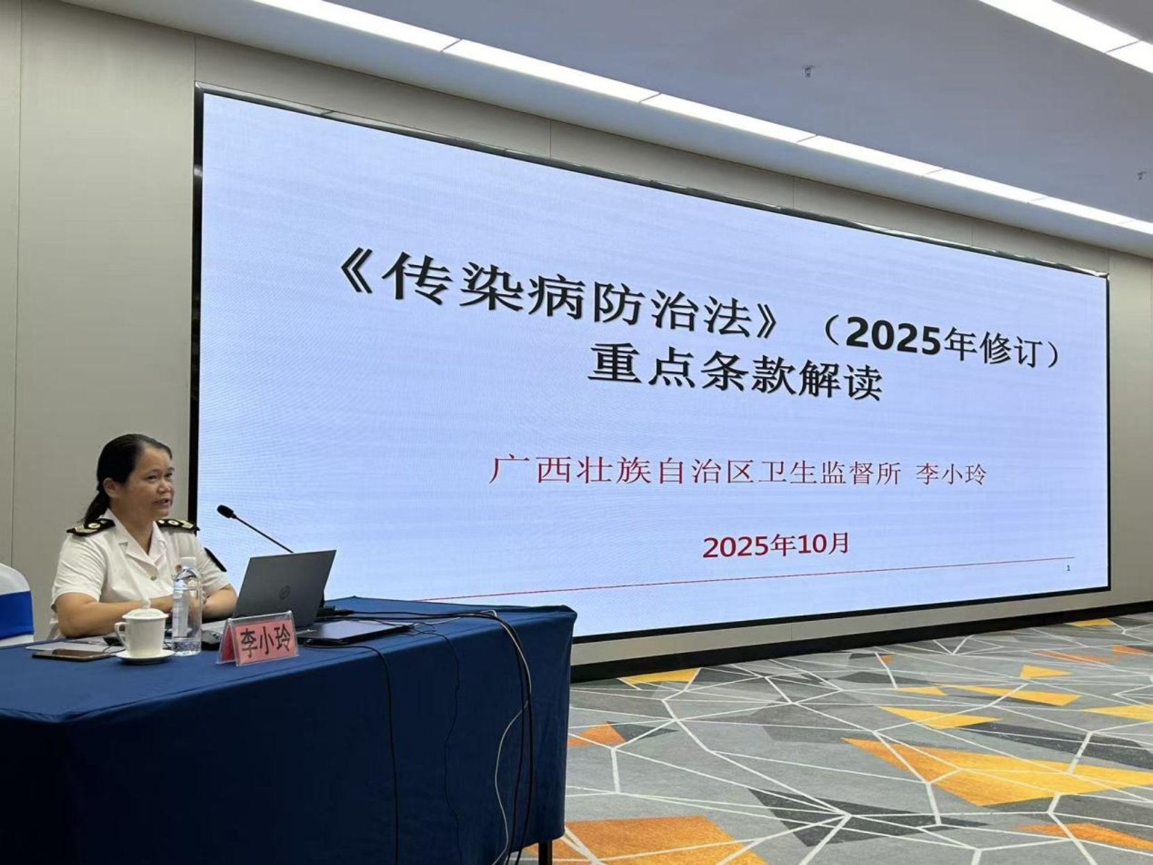为深入贯彻落实《中华人民共和国传染病防治法》等法律法规,进一步提升我区传染病防治卫生监督执法能力,2025年10月15日至16日,自治区卫生监督所在南宁市组织召开2025年传染病防治卫生监督执法能力培训班,全区各市、县传染病防治监督业务骨干共140余人参会。