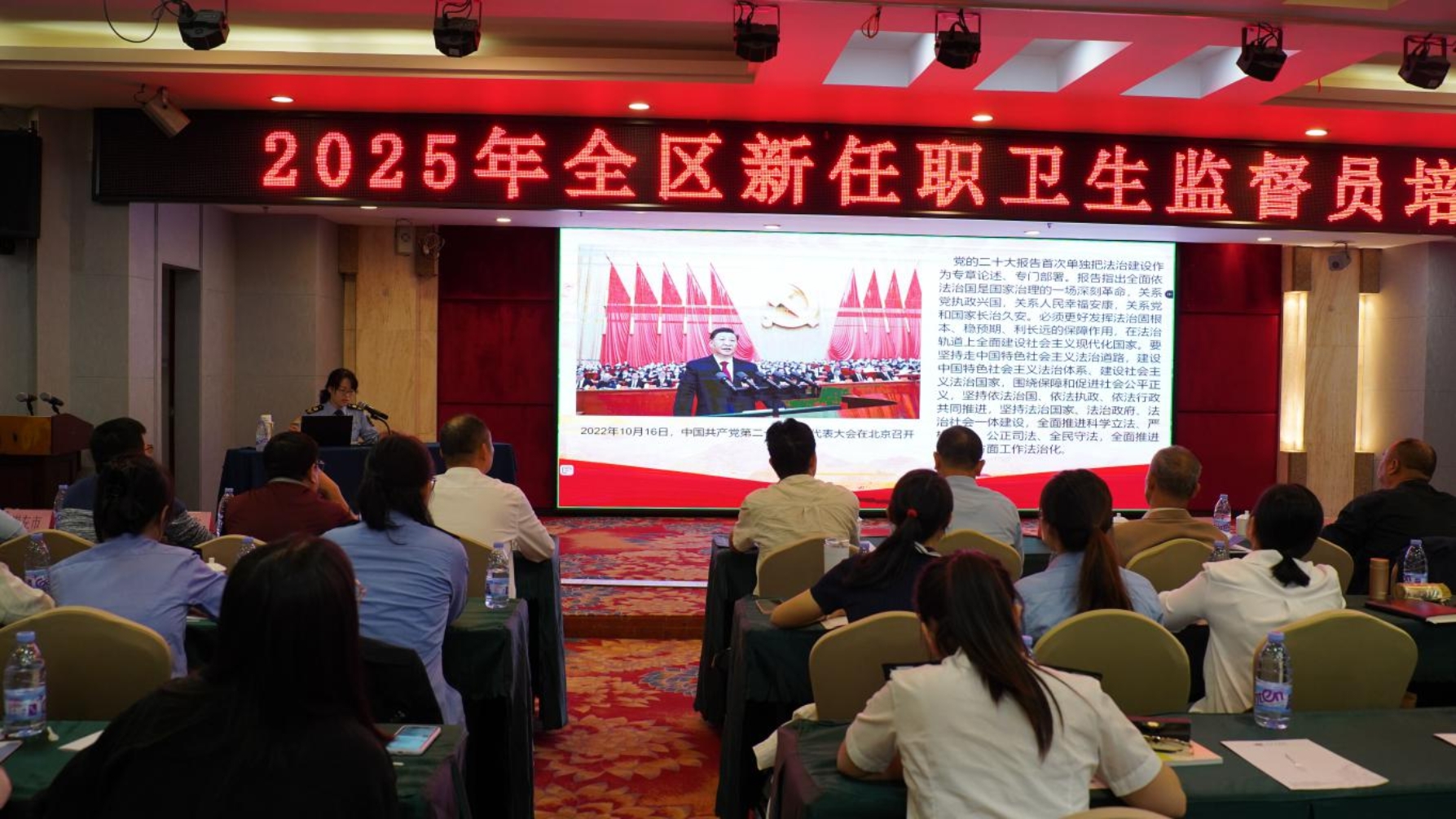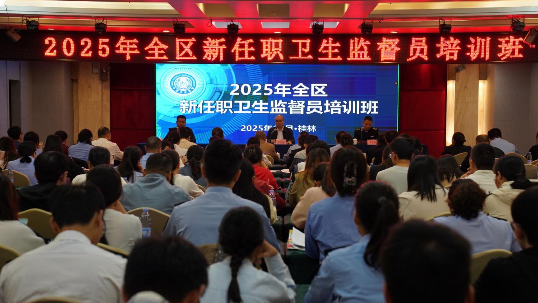 为进一步加强我区卫生监督队伍建设,提升新任职卫生监督员的履职能力,2025年10月20至22日,自治区卫生监督所在桂林市举办全区新任职卫生监督员培训班。自治区疾控局综合监督处副处长李克逊出席开班仪式并讲话,自治区卫生监督所纪委书记李铁辉主持开班式,桂林市疾控中心(桂林市卫生监督所)党委书记冯羽在开班仪式上致欢迎辞。来自全区180余名新任职卫生监督员参加培训。