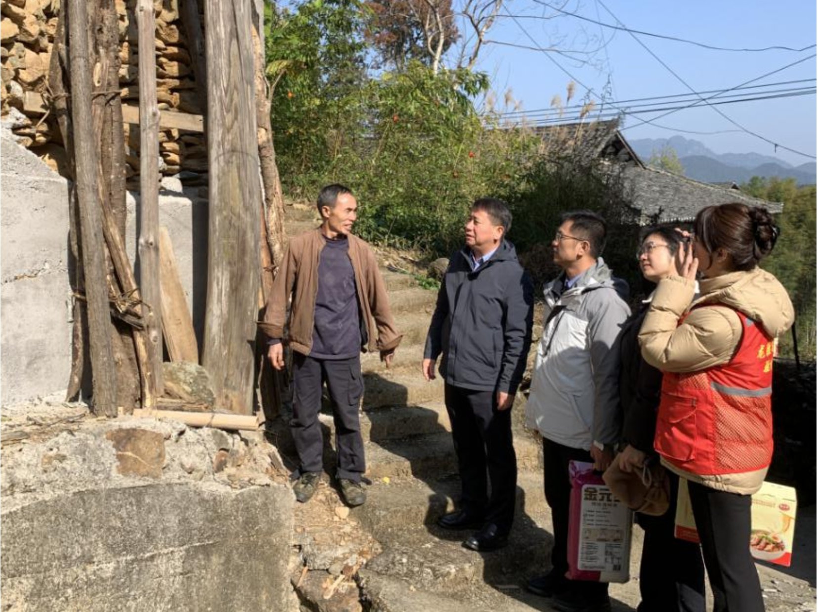 沿着蜿蜒山路,大家提着慰问品深入泗水村5户对口帮扶对象家中,与他们围坐一堂、促膝交谈,细致询问经济收入、健康状况以及各项政策落实情况等,认真了解他们在生产劳作和日常生活中遇到的实际困难,并现场查看上一季度帮扶事项的落实情况。在吴定山家中,看到此前帮扶的水泥已成功用于房屋墙体加固,住房安全得到切实保障,大家倍感欣慰,鼓励他继续依托当地特色产业积极发展生产,用好各项帮扶政策,把日子过得愈发红火。