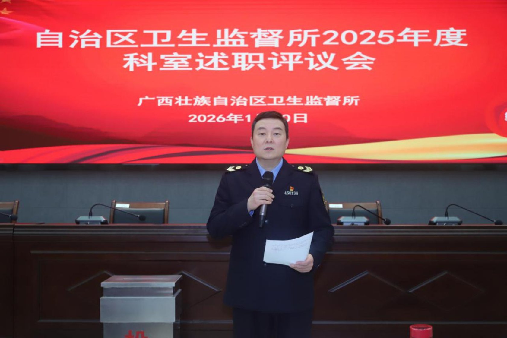 2026年1月30日,自治区卫生监督所组织召开2025年度科室述职评议会。会议由党委书记、所长景军同志主持,全体中层干部及调研员参加。